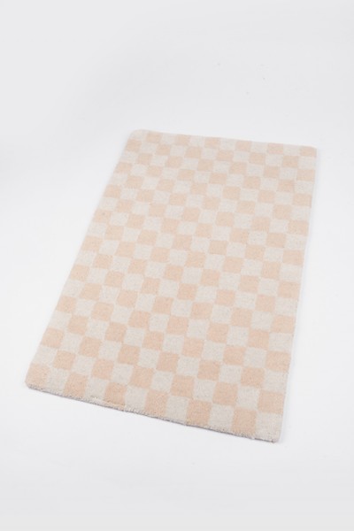 양모 재질의 수제작 다용도 러그입니다. 체크 nude&white