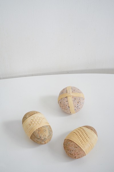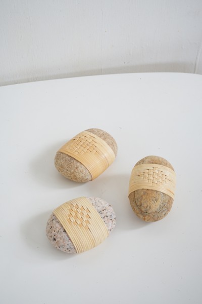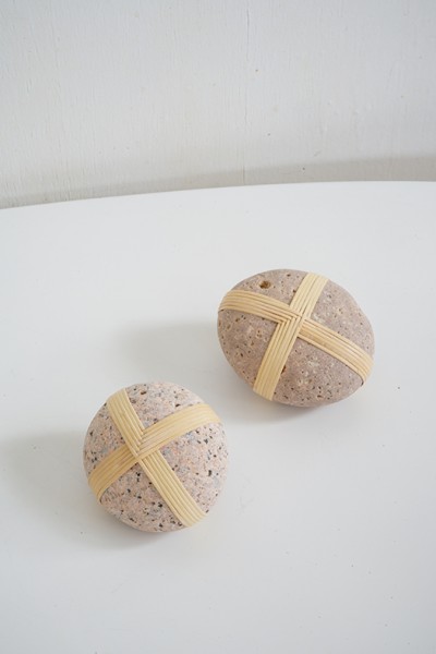 라탄으로 섬세하게 짜여진 스톤오브제입니다.